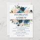 Navy Blue Blush Pink Rose Boho Wedding Invitation