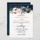 Navy Blue Blush Pink Rose Boho Wedding Invitation