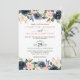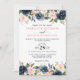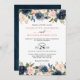 Navy Blue Blush Pink Rose Boho Wedding Invitation