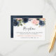 Navy Blue Blush Pink Rose Boho Wedding Reception Enclosure Card