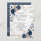 Navy Blue Blush PInk Rose Marble Floral Wedding Invitation