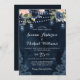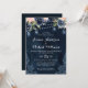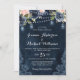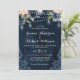 Navy Blue Blush Pink Rose String Lights Wedding Invitation