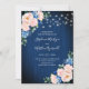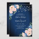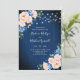 Navy Blue Blush Pink String Lights Floral Wedding Invitation