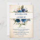Navy Blue Blush Rose Floral Rustic Country Wedding Invitation