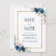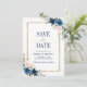 Beautiful floral boho modern geometric wedding save the date card features hand-painted watercolor floral graphics / roses in rich tones of navy blue and blush pink with gold frame. Please contact me for any help in customization or if you need any other product with this design.
