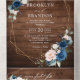 Dark navy blue floral geometric wedding Invitation featuring elegant bouquet of navy blue, royal blue , white , blush rose and sage green eucalyptus leaves and elegant glitter geometric neutral frame on rustic wood background. Please contact me for any help in customization or if you need any other product with this design.