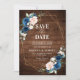 Dark navy blue floral geometric wedding save the date card featuring elegant bouquet of navy blue, royal blue , white , blush rose and sage green eucalyptus leaves and elegant glitter geometric neutral frame on rustic wood background. Please contact me for any help in customization or if you need any other product with this design.