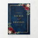 Dark navy blue burgundy floral geometric wedding Invitation featuring elegant bouquet of navy blue, royal blue , white , blush, burgundy, marsala rose and sage green eucalyptus leaves and elegant gold glitter geometric neutral frame. Please contact me for any help in customization or if you need any other product with this design.