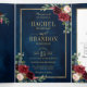 Navy Blue Blush Watercolor Gold Geometric Wedding Tri-Fold Announcement