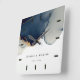 A modern, simple, classy, elegant, personalized wedding anniversary keepsake clock featuring a watercolor design in navy blue, teal and gold (digital effect). A nice custom wedding or anniversary gift for a young - and young at heart - couple celebrating their 1st, 3rd, 5th, 10, 25th or 50th anniversary.