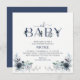 Navy Blue Boho Floral Boy Baby Shower Square Invitation