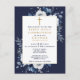 Navy Blue Boho Floral First Holy Communion Invite