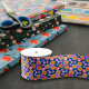 Navy Blue Boho Floral Print Pattern Pretty Craft Grosgrain Ribbon