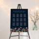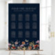 Navy Blue Boho Floral Seating Chart Foam Board. Guide your guests with grace and floral elegance using this “Please Find Your Seat” seating chart from the Moody Navy Blue Boho Wildflowers Collection. Featuring hand-painted wildflowers, dried grasses, and autumn leaves in earthy hues of burnt orange, terracotta, and tan against a moody navy backdrop, it creates a warm, romantic welcome to your reception space. Both functional and decorative, this chart brings order and beauty together effortlessly. Begin designing your perfect seating display today.