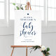 Welcome guests to your event with this customizable baby shower welcome sign. It features bold script and classic typography. Personalize by adding your details. This navy blue baby shower welcome sign is perfect for any baby shower theme and season. Matching items are available.