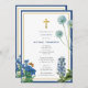 Navy Blue Botanical & Gold Baptism Christening Boy Invitation