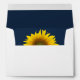 Botanical return address envelope, with customizable lettering and a peeking yellow sunflower on the inside. The sunflower is set on a navy blue background. Great for adding a floral touch to your cards and announcements.