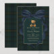 Celebrate in timeless style with this luxury equestrian teddy bear baby shower invitation, inspired by classic polo tradition and British heritage. A rich plaid tartan backdrop in deep navy and moody forest green, accented with a statement navy blue bow and a charming teddy bear motif, creates a beautifully refined, heirloom-inspired look.