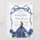 Navy Blue Bow Princess Silver Crown Quinceañera Invitation