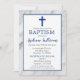 Plain white envelopes are included with paper invitations and will come to fit the invitation size you select. If you don’t need the envelopes, you may choose to not receive them by selecting the dropdown below "Envelopes" and choosing "None." If you’d like to have a design on your envelopes, you can browse all of these available envelopes to find the design that complements your Navy Blue Boy Marble Baptism Invitation.