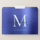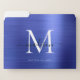 Navy Blue Brushed Metal Monogram Script Name File Folder