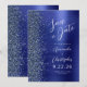 This elegant modern wedding save the date card features a navy blue brushed metal background decorated with faux diamond glitter. The customizable text combines white script and sans serif fonts. The reverse side repeats the navy blue brushed metal and glitter design.