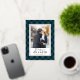 Navy Blue Buffalo Plaid Peace On Earth Photo Foil Holiday Card