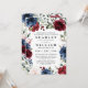 Template features an elegant wreath of watercolor flowers in shades of burgundy red, Marsala, navy and blush pink with a modern typography layout.