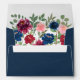 Navy Blue Burgundy Blush Pink Marsala Fall Wedding Envelopes - feature an interior design of beautiful watercolor floral elements in shades of navy blue, burgundy, blush pink, and more over greenery (eucalyptus) etc. This product is bohemian or elegant themed and perfect for any seasonal wedding -- spring, summer, fall or even winter. View the matching collection on this page to match the entire wedding set (suite). The exterior features a watercolor wash in navy blue color. You will need to purchase a white, gold or silver paint pen online or at your local big box store to hand write guest names on the exterior dark blue color.