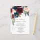 Design features beautiful watercolor floral elements (peony roses, several elegant English rose elements, etc) in shades of burgundy red, blush pink peach, navy blue and more over eucalyptus greenery, leaf elements, and more in shades of green, silver and antique gold.