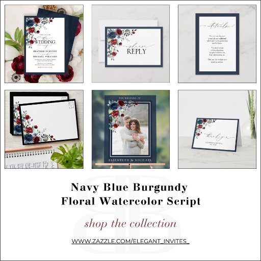 Navy Blue Burgundy Floral Watercolor Script RSVP
