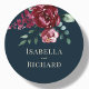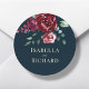 Navy Blue | Burgundy Floral Wedding Classic Round Sticker