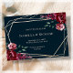 Customizable save the date card in dark navy blue. Featuring pretty burgundy floral bouquets with a gold geometric frame.