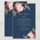 Design features an elegant dark blue watercolor background with a watercolor bouquet or wreath in shades of burgundy red, Marsala, light blush pink, peach, and more over greenery elements of eucalyptus and vintage gold leaves. You can move, add, delete text under the customize further tools if you would prefer to make your own text template with this graphic design template.