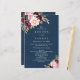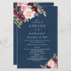 Design features an elegant dark blue watercolor background with a watercolor bouquet or wreath in shades of burgundy red, Marsala, light blush pink, peach, and more over greenery elements of eucalyptus and vintage gold leaves. You can move, add, delete text under the customize tools if you would prefer to make your own text template with this graphic design template.