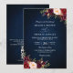 Navy Blue Burgundy Red Floral QR Code Wedding Invitation