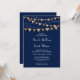 Navy Blue Burlap Bunting String Lights Wedding Invitation