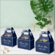 Put your bridal shower/wedding gifts into these romantic rustic navy blue favor boxes featuring white floral lace and string lights on a burlap background.