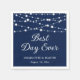 These navy blue rustic wedding paper napkins featuring a burlap background adorned with string lights are ideal for a navy blue rustic country, backyard or barn wedding party. Easily personalize these napkins with your wedding details.