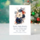 Make a stunning first impression with this elegant navy blue, burnt orange, and champagne floral letterpress save the date card, featuring luxurious debossed typography on the front and a beautiful full-color photo layout on the back. The front showcases crisp letterpress text surrounded by vibrant digital florals, carefully designed to meet press requirements while creating a refined, high-end feel. The reverse includes a customizable photo area and a convenient QR code for effortless RSVPs. Perfect for modern couples who love timeless luxury with an artistic touch.