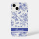 Navy Blue Butterfly Toile iPhone 14 Pro Case