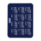 Yearly calendar for 2025 with white numbers on navy blue background printed on small flexible magnets