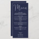 This navy blue elegant script wedding menu can be personalized with all your special wedding day menu, names and special date. Designed by Thisisnotme©