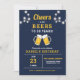 Navy Blue Cheers And Beers Birthday Party Invitation
