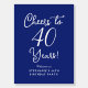 Navy Blue Cheers to 40 Years Birthday Welcome Foam Board