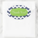 Navy blue and white chevron with green label. Monogram with your initials or personalize it with your name!