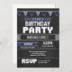 Navy Blue Chevron Chalkboard Birthday Invitation