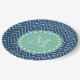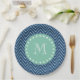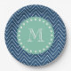 Navy Blue Chevron Pattern | Mint Green Monogram Paper Plates