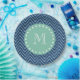 Preppy, chic, trendy, navy blue and white modern chevron stripes, zigzag pattern, navy blue chevron pattern, you can personalize with a white monogram initial in a modern font, on a mint green circle label frame with a fun white polka dot circular border. GraphicsByMimi© A trendy pattern for her. Use the template field to add your monogram initial or letter or select “customize it” for more editing options like adding your name, text or photo to make your own, unique, personalized, one-of-a-kind custom design. Other colors available.