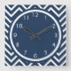 Navy Blue Chevron Zigzag Pattern Square Wall Clock
